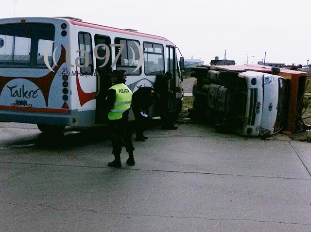 (Río Grande, 06 de noviembre de 2011) – Pasadas las 10:30 horas del domingo un colectivo de la empresa Taikre colisionó a un camión KIA. El accidente se produjo en la intersección de la avenida San Martín e Ibarra del populoso barrio de Chacra IV.