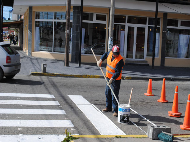 Enmarcado dentro del Plan de Seguridad Vial, la Secretaría de Obras y Servicios Públicos está llevando a cabo la marcación de las sendas peatonales en el centro de Río Grande.
