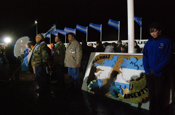 Aquí se llevó a cabo una guerra sangrienta. Aquí luchaban, morían y sobrevivían los combatientes de Malvinas, aquí se los veía partir. Hoy, a casi 30 años de tal acontecimiento, esa herida sigue abierta, sangrando. Hoy, casi 30 años después, todos los vecinos de mi provincia seguimos recordando, insistiendo con los reconocimientos de las personas que arriesgaron sus vidas por la patria. Y en este orden, la Ciudad de Río Grande, todos los años, organiza una muy emotiva y reflexiva jornada de memoria y de homenaje, de luto, de adiós y de esperanza. Todos los años, la noche anterior a la fecha de iniciada la desigual contienda bélica, los vecinos nos juntamos en el monumento de Malvinas de la Ciudad de Río Grande, donde velamos por los seres queridos que no están, por los seres anónimos que no han vuelto, donde compartimos muy íntima y profundamente el dolor de nuestros compañeros que pueden reunirse con nosotros.