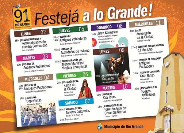 La profesora Silvia Rosso explicó que “el Intendente nos pidió que oficialmente presentemos ante los medios radiales, gráficos y televisivos, sobre cuáles van a ser los eventos en los que nos vamos a enmarcar conmemorando el aniversario de la ciudad de Río Grande; si bien conocemos que hay una ordenanza que es la 2525 del 2008 que le da un marco formal a todo lo que se realice desde la ciudad de Río Grande y desde las diferentes instituciones sociales, organizaciones civiles, fábricas, escuelas; en definitiva, desde las diferentes organizaciones que hay en la sociedad. Esta norma establece que se enmarque los festejos para que los vivimos en la ciudad podamos arraigarnos y podamos afianzar el sentido de pertenencia que se merece la ciudad en la que decidimos y elegimos vivir, teniendo en cuenta que los que vivimos acá, vinimos desde diferentes lugares del país y del extranjeros”.
