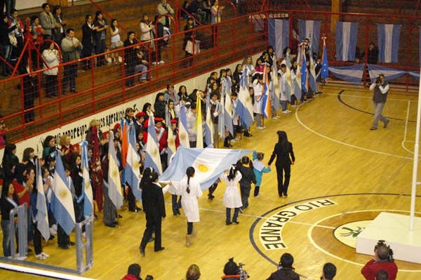 Al son de la Banda de Música del municipio, el Intendente junto a escolares y autoridades presentes, procedieron a izar el Pabellón nacional que minutos antes fue ingresada al gimnasio por alumnos de diferentes escuelas.