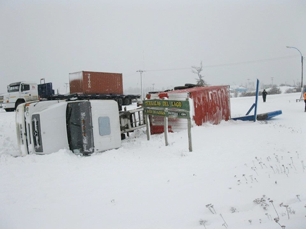 (Río Grande, El accidente ocurrió en horas del mediodía y el protagonista fue un camión camión Mercedes Benz de la firma Pralong transportaba plásticos para la firma Río Chico, desde Ushuaia hacia Río Grande. Una mala maniobra hizo que el rodado volcara a la vera de la ruta 3