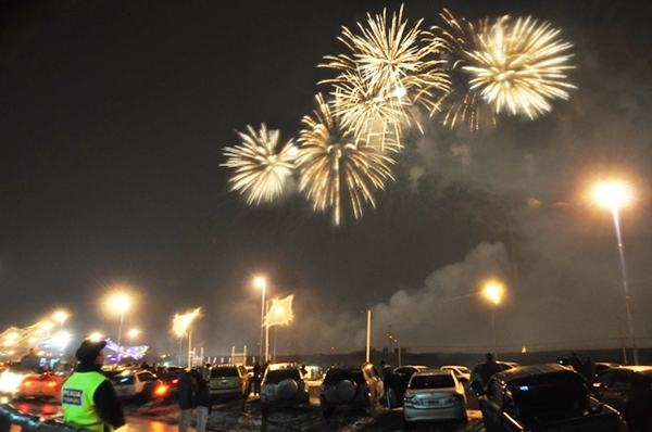 A los pocos minutos, el Jefe comunal junto a los presentes comenzó la cuenta regresiva con lo que el espectáculo de los fuegos artificiales dio inicio con su estruendo y brillante colorido que se reflejaba en el mar, lo que brindó un panorama imponente como nunca antes se pudo apreciar.