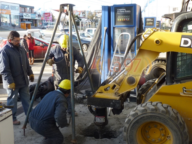 Con auxilio de máquinas y logística aportadas por una empresa local, Eugenio Services, los técnicos y operarios comenzaron con una serie de excavaciones que se centraron en la estación de servicio ubicada en Rivadavia y San Martín pero que `podrían extenderse a un amplio radio en varias manzanas adyacentes.