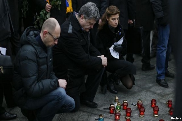 No ha habido comentarios del presidente ucraniano, quien el domingo habló a miles de manifestantes en Kiev. Los manifestantes rendían tributo a las 13 personas muertas la semana pasada cuando una bomba impactó en un autobús cerca de la población de Volnovakha, a unos 60 kilómetros al suroeste de Donetsk.