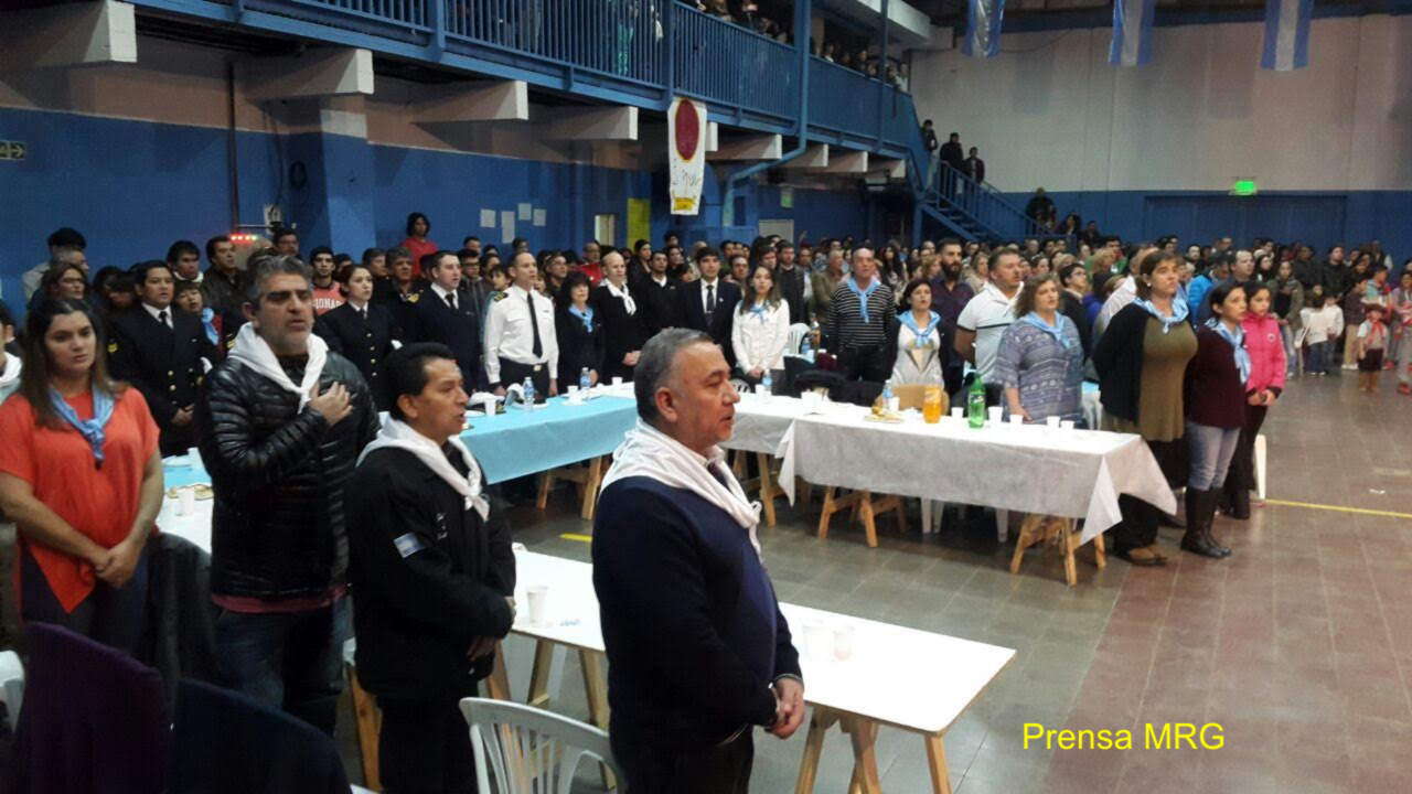 Con la ejecución del Himno nacional argentino por parte de la Banda de Música del Municipio, las fuerzas vivas de la ciudad de Río Grande recibieron al 25 de mayo en el Club San Martín.