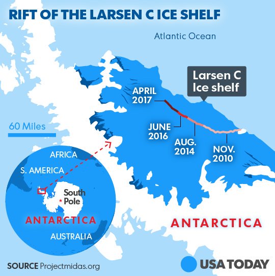 La noticia saltó a las páginas de los diarios de todo el mundo a principios de año: en sólo dos meses, la grieta de la barrera de hielo Larsen C en la península antártica había crecido 27 kilómetros y alcanzaba los 112 kilómetros de largo, algo más de 90 metros de ancho y 530 metros de profundidad.