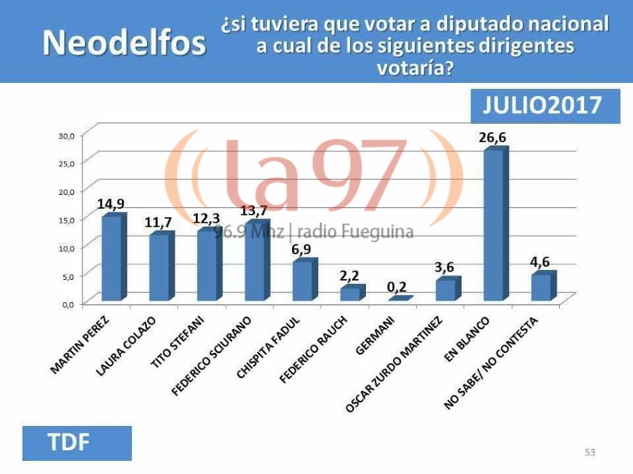 ((La 97)) Radio Fueguina accedió de manera exclusiva a un nuevo sondeo realizado por la consultora Neodelfos respecto la intención de voto de los fueguinos de cara a los comicios de este año.