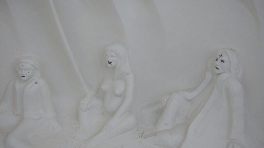 En las últimas horas, el Monumento a los Pioneros y a los Antiguos Pobladores de Ushuaia fue atacado por vándalos, que realizaron pintadas sobre los rostros y cuerpos de las esculturas.