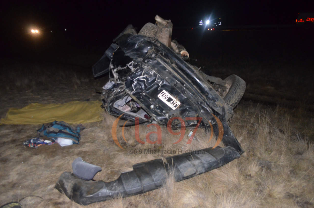 Cuando transitaban una extensa curva, sobre el kilómetro 2906 en dirección al norte, a unos 60 kilómetros de Río Grande, el vehículo salió de la carpeta asfáltica, rozó el guardrail y comenzó a dar tumbos. Quedó, finalmente, apoyado sobre su techo, totalmente destruido y con sus cuatro ocupantes atrapados en el interior.
