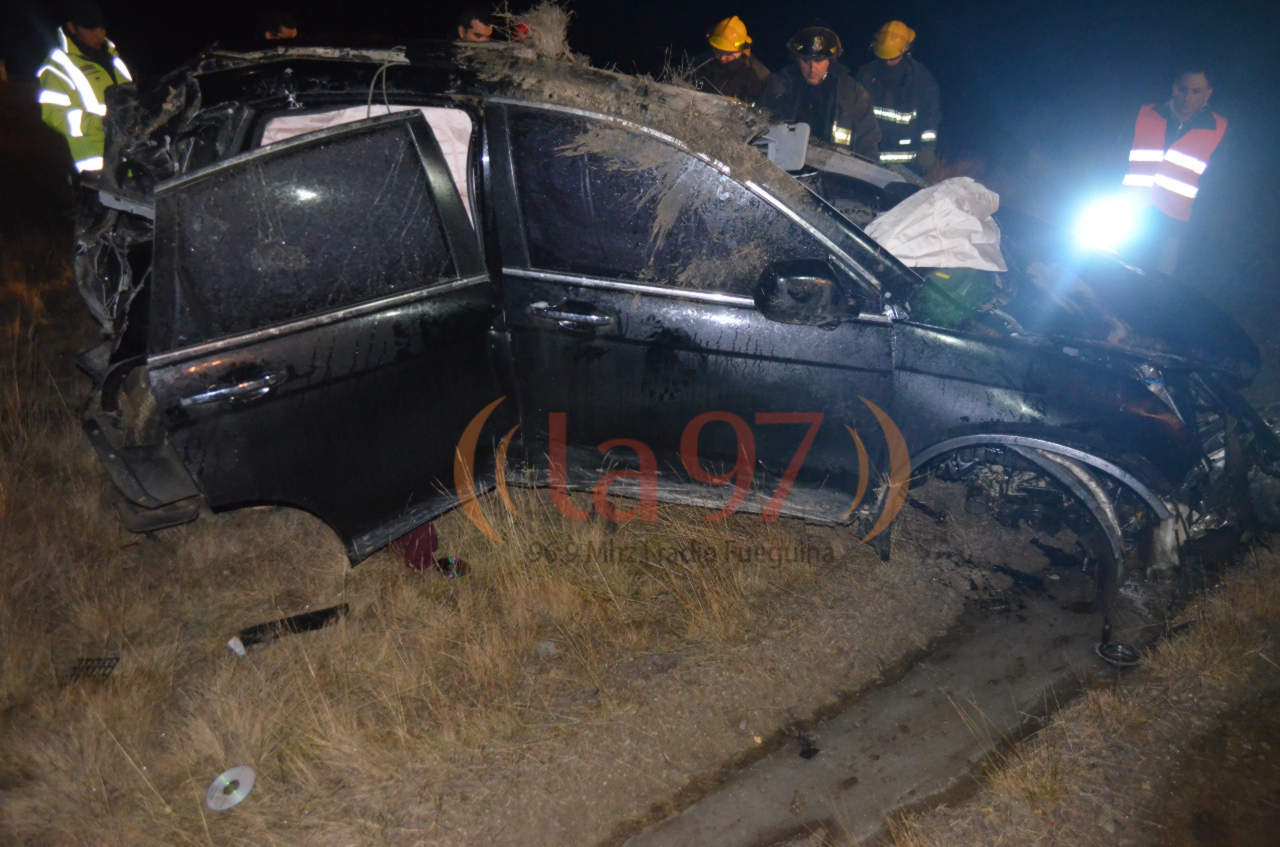 Los rescatistas, al llegar, encontraron a la camioneta en plena oscuridad, sobre el pasto, a más de ochenta metros de la calzada, lo que da una clara noción de la tremenda violencia del accidente.