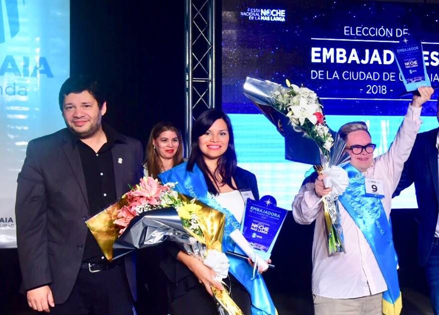 La Fiesta Nacional de la Noche más Larga inició su recorrido de nueve noches con la gala popular en el Centro Cultural Esther Fadul en la que se eligió, por tercer año consecutivo, embajador y embajadora de la Ciudad. El intendente Walter Vuoto, que compartió la totalidad del encuentro, fue el encargado de colocar la banda de embajadora a Yanina Ailín Ariza, una joven fueguina, tripulante de cabina de la línea de bandera, quien promociona a su ciudad natal, Ushuaia, por todo el país y el mundo. También el intendente le dio la bienvenida como nuevo embajador a Matías Núñez Olivera, de ASDU, quien lleva adelante una campaña sobre el cuidado del medioambiente y forma parte de la agrupación guardianes ambientales.