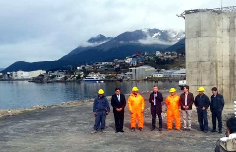 Luego, en lo que constituyó el único acto oficial en territorio fueguino, dio un breve discurso en el marco de la obra de tratamiento de líquidos cloacales Arroyo Grande. Algunos funcionarios y obreros con su clásico casco, formaban el séquito obligado para la ocasión.