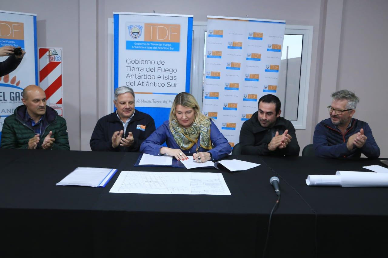La gobernadora Rosana Bertone encabezó –este lunes en Río Grande- la firma del contrato de obra pública denominada “Red de gas Barrio Arraigo Sur”. La inversión es de más de 16 millones de pesos y se beneficiarán un total de 516 nuevos servicios domiciliarios