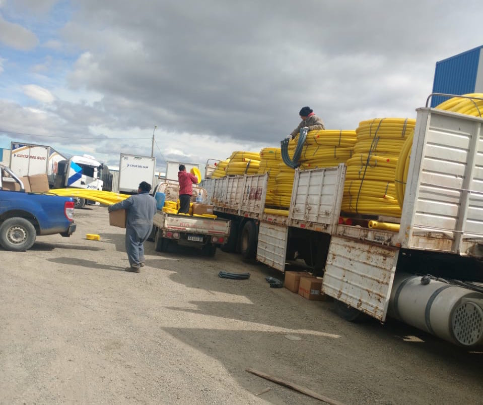 Este importante cargamento llegó a Río Grande luego que el Municipio de la ciudad llamará a licitación para la ejecución de la obra de tendido de red de gas natural en el Barrio Esperanza, y que sumará asimismo a los barrios Betel y Fuerza Unida de la Margen Sur.