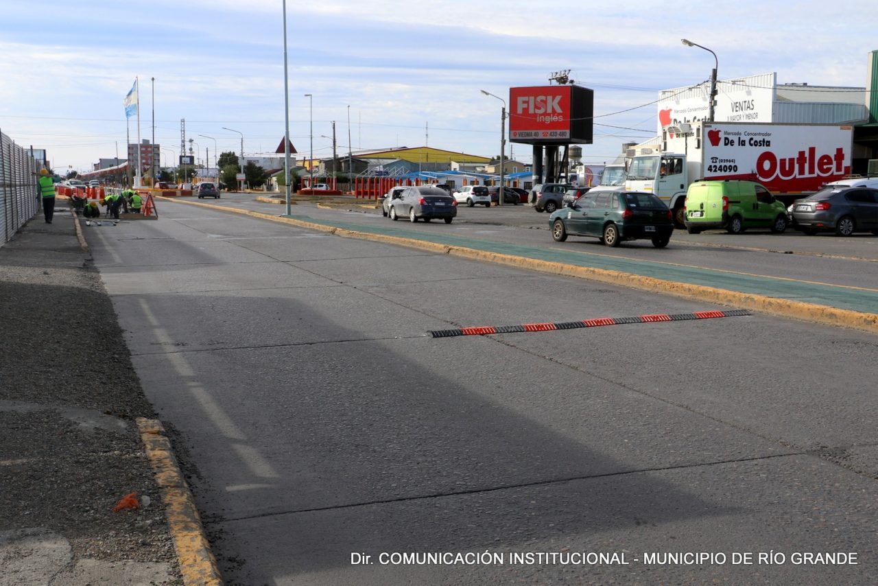 Personal municipal realizó en las últimas horas la colocación de reductores de velocidad en el sector de salida de la Rotonda de las Américas sobre avenida San Martín en dirección a Chacra II.