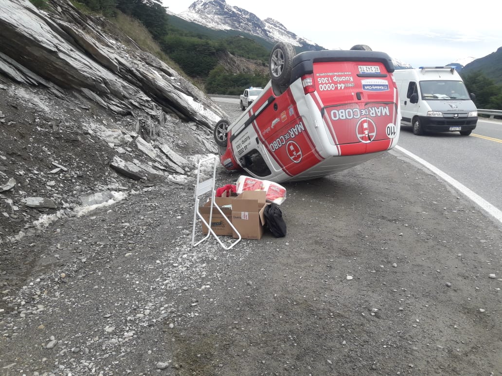 Allí, el conductor de un vehículo Peugeot Partner perdió el control y tras salirse de la calzada volcó, quedando a escasos metros del vacío.