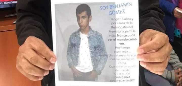 Desde hace meses, la familia de Benjamín Gómez realiza todo tipo de colectas para lograr reunir el dinero necesario para que el joven sea trasladado a China y pueda cumplir su sueño: recuperar la visión.
