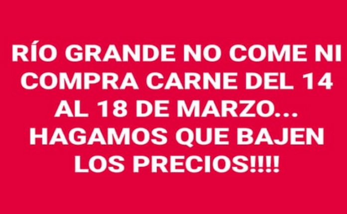 Este tipo de boicot, antes utilizado para repudiar los aumentos del precio de la nafta, también tendrá repercusión en nuestra ciudad: hoy surgió a través de Facebook una campaña para que Río Grande no compre ni coma carne desde el 14 al 18 de marzo.