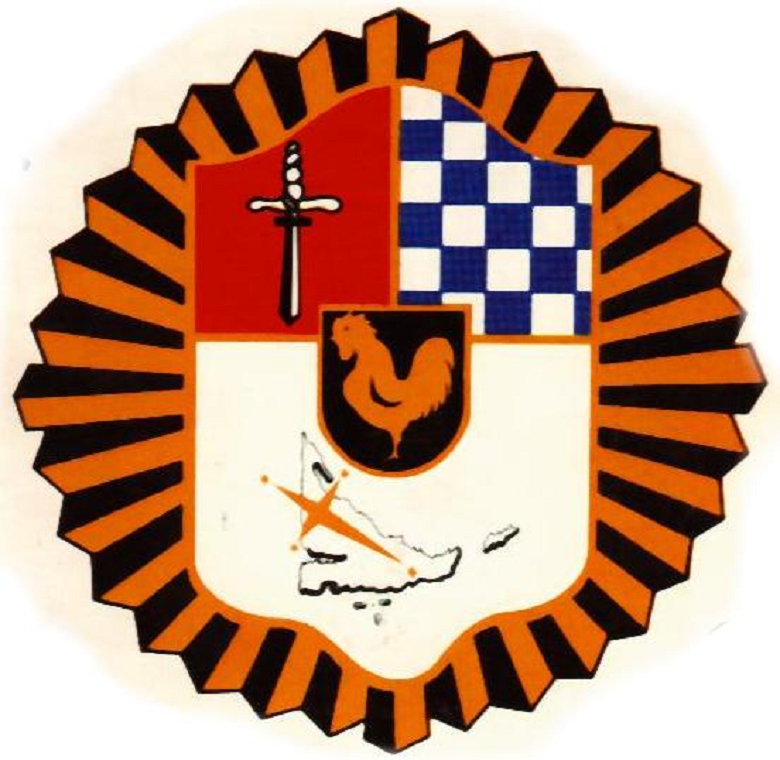 Se ha concebido de acuerdo a las normas que para el arte de la blasonaría, dicta la heráldica española. Su símbolo definido como medio partido y cortado con fileras en metal oro, se recarga con un escudete, presentando su campo diestro superior sobre esmalte rojo significativo de arrojo y tenacidad para el logro del fin propuesto, una espada desnuda en metal oro, representativa del poder y la justicia completando con el metal oro la simbología de la nobleza de procederes.