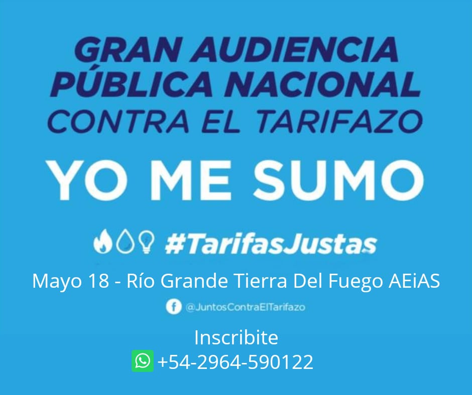 Este sábado 18 de mayo, Río Grande volverá a ser sede de una nueva audiencia pública contra los tarifazos del Gobierno Nacional.
