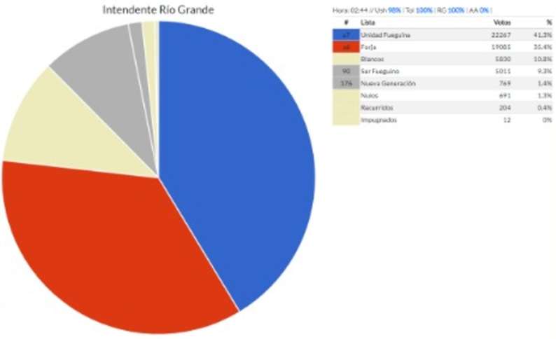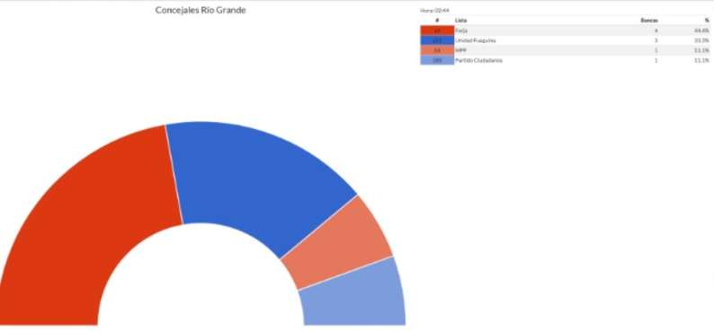 Los números parciales dictan que en el Concejo Deliberante de Río Grande tendrían 4 bancas Forja (primera minoría), Unidad Fueguina alcanzaría 3, y el Movimiento Popular Fueguino y Ciudadanos, 1 cada uno.
