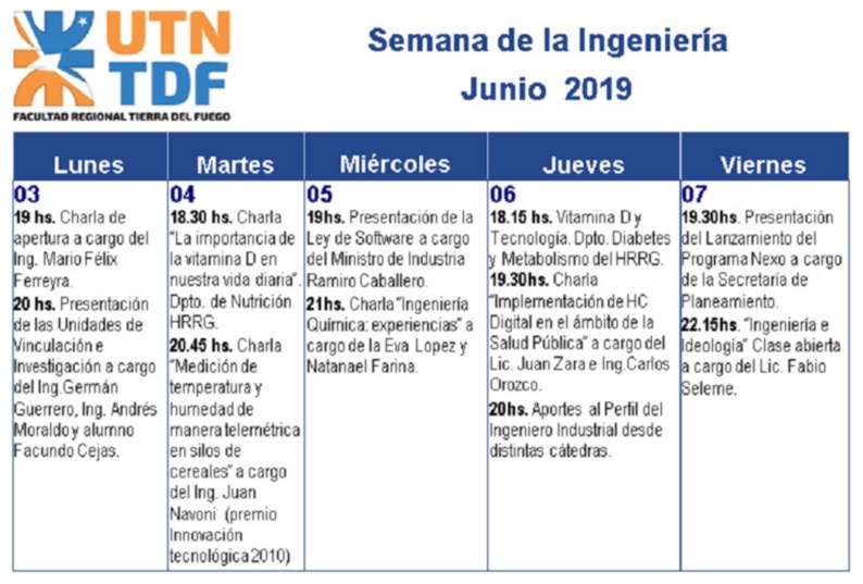 En virtud de ello “se toma habitualmente una semana en todas las facultades de ingeniería del país para realizar actividades de divulgación de la ingeniería”, explicó el Licenciado Fabio Seleme, secretario de Cultura y Extensión de la Facultad Regional Tierra del Fuego de la Universidad Tecnológica.