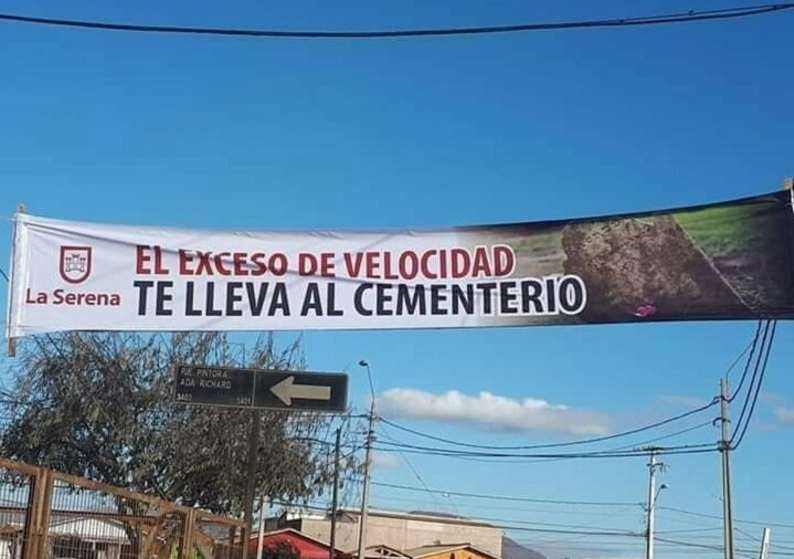 “Pare es pare, #$%&@”; “Más despacio para no morir rápido”; “No sea WN! Respeta las señales”; “Te creí Formula 1, #$%&@?” y “El exceso de velocidad te lleva al cementerio” son algunas de las frases de los lienzos que fueron instalados en puntos estratégicos de La Serena, especialmente en intersecciones que registran un alto número de accidentes automovilísticos.