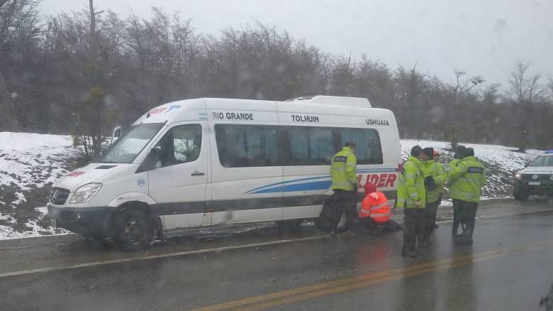 Su conductor, Fabián Ábalos, pisó un planchón de hielo y perdió el control de la unidad, que terminó saliéndose de al calzada.