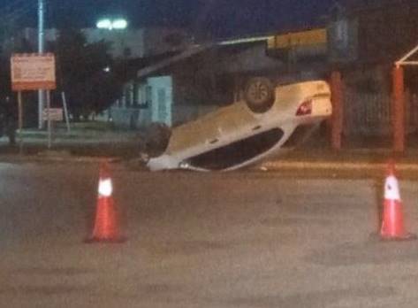 Es que allí perdió el control y volcó el conductor de un rodado marca Renault Symbol, que terminó con sus cuatro ruedas apuntando hacia arriba.