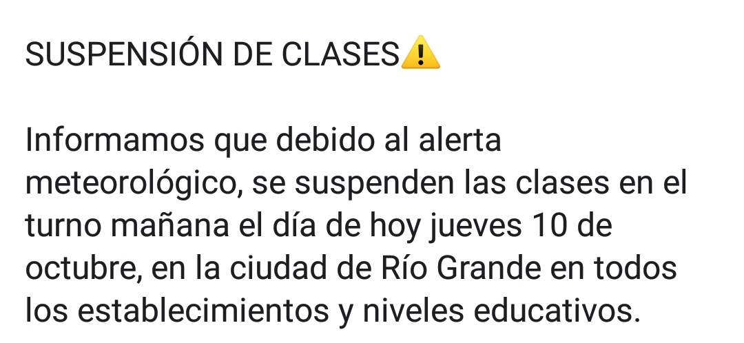 Mediante una notificación, se hizo saber a la comunidad fueguina que las clases en el turno mañana están suspendidas y habrá que aguardar para ver si ocurre lo mismo en el turno tarde.