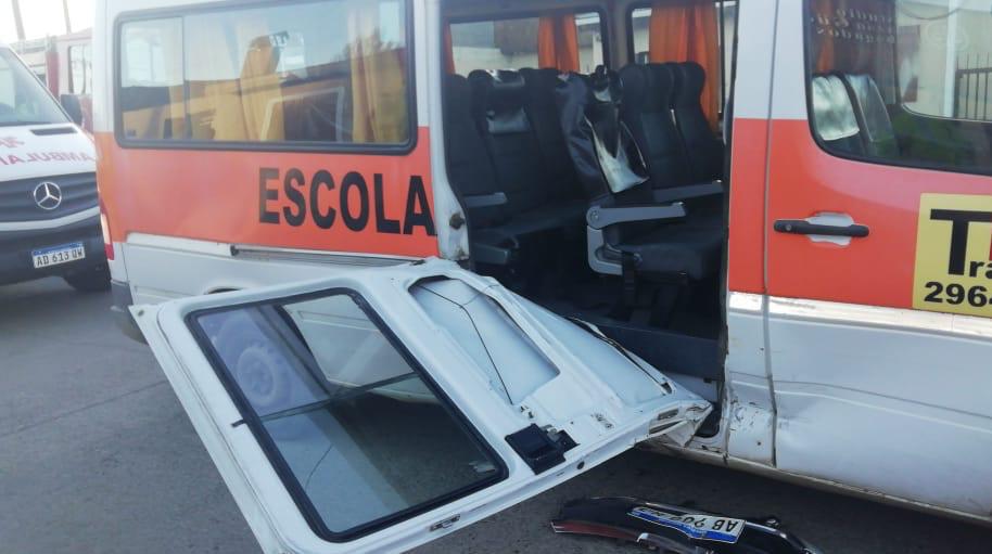 En la intersección antes mencionada, el transporte escolar chocó con un Peugeot 208, guiado por Silvia Santillán, que al igual que su acompañante resultó ileso.
