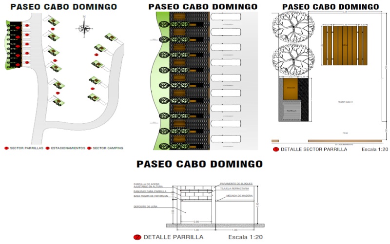 Además el proyecto estipula la construcción de platea de estacionamiento para el vehículo, fogones, mesa, asientos, plantación de árboles, y tachos para la basura.