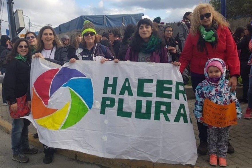 Foto: Nancy Fernández, en el 8M (tercera de izquierda a derecha)