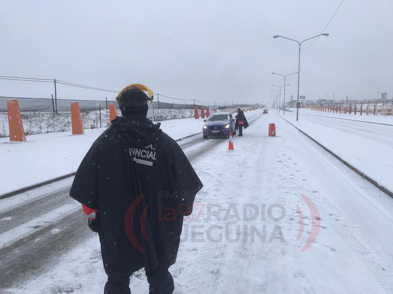 Estoicos bajo la nieve y a pesar de las condiciones climáticas adversas, uniformados de la Policía provincial continúan cuidando a los vecinos a través de los retenes policiales.