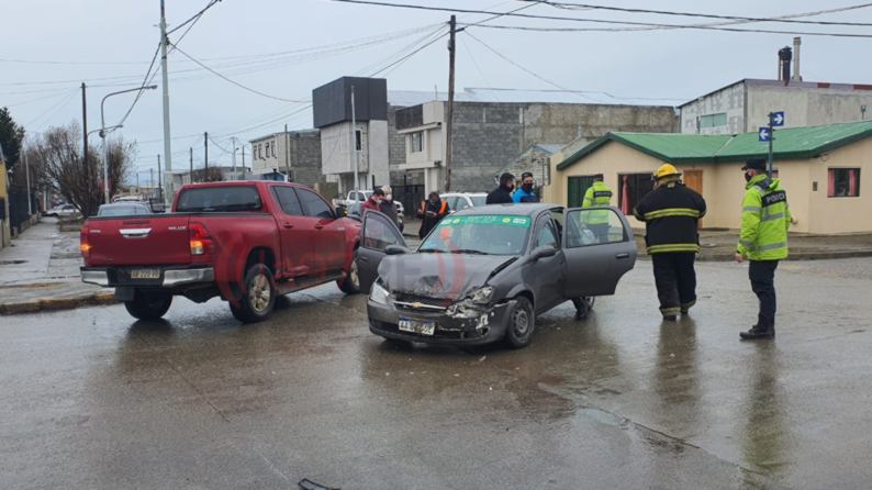 El accidente tuvo como protagonistas a un automóvil Chevrolet Corsa, interno 106 de Remicoop y una camioneta Hilux, patente AB220VO.