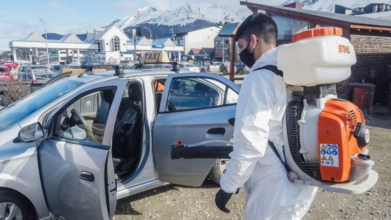 La Municipalidad de Ushuaia lleva a cabo tareas de desinfección en vehículos y transportes públicos en el marco del plan de prevención que implementó el intendente Walter Vuoto desde el inicio de la pandemia, que incluye también la entrega de kits sanitizantes y la desinfección de espacios públicos.