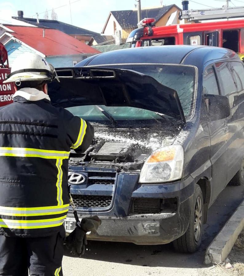 Efectivos de Bomberos combatieron este mediodía el fuego que afectó a un vehículo en pleno centro de Río Grande.