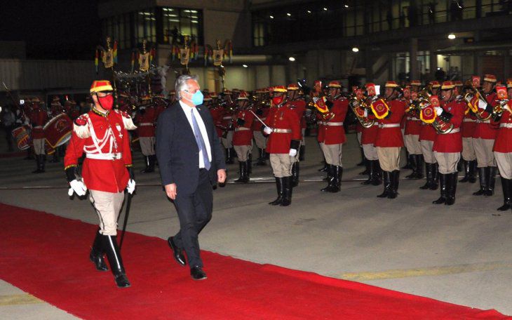 Fernández arribó a última hora de la tarde de ayer al Aeropuerto Internacional El Alto de la Ciudad de la Paz, donde fue recibido por el presidente de la Cámara de Senadores de Bolivia, Andrónico Rodríguez, y de Diputados, Freddy Mamani.