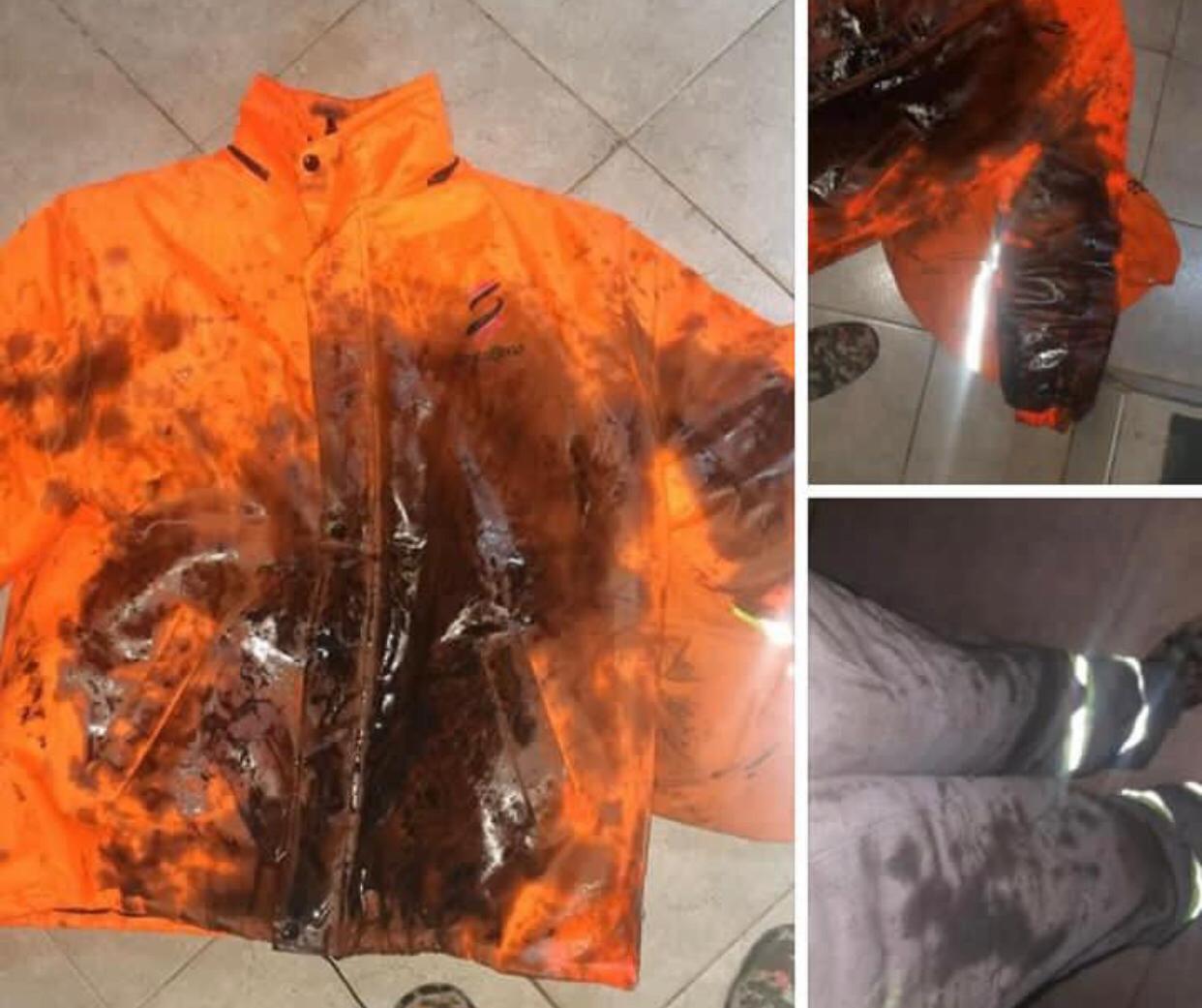 «Buenas tardes, ayer haciendo las tareas de recolección en calle 25 de mayo uno de los tantos contenedores que levantamos tenia bidones con aceite quemado que tiran los señores de los talleres mecánicos y reventó. Miren lo que pasa, por favor no tiren cosas que puedan perjudicar a nuestra salud, hemos encontrado baterías de autos y todo lo que se imaginen, desde ya mucha gracias», sostuvo.