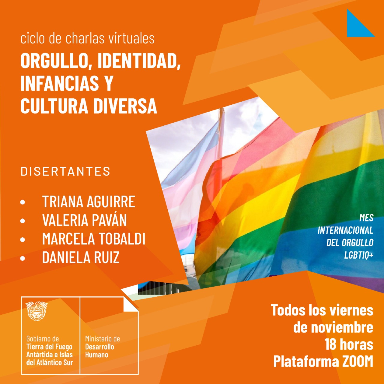 El Ministerio de Desarrollo Humano, a través de la Subsecretaría de Diversidad invita a la comunidad a participar en el Ciclo de Charlas virtuales “Orgullo, Identidad, Infancias y Cultura Diversa”, a realizarse los días viernes 6, 13, 20 y 27 de noviembre a las 18 hs, por plataforma zoom.