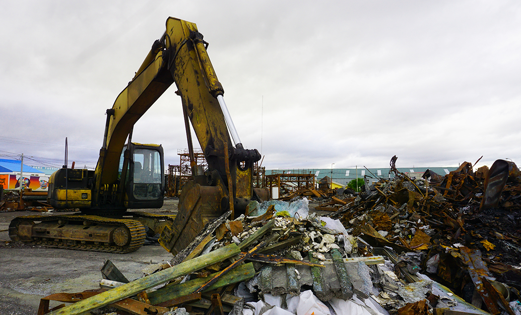 Maquinaria vial pesada comenzó, hace algunos días, la remoción de los escombros y el desecho que quedó tras el incendio de la planta fabril de Plásticos de la Isla Grande, ocurrido el 13 de noviembre de 2018.
