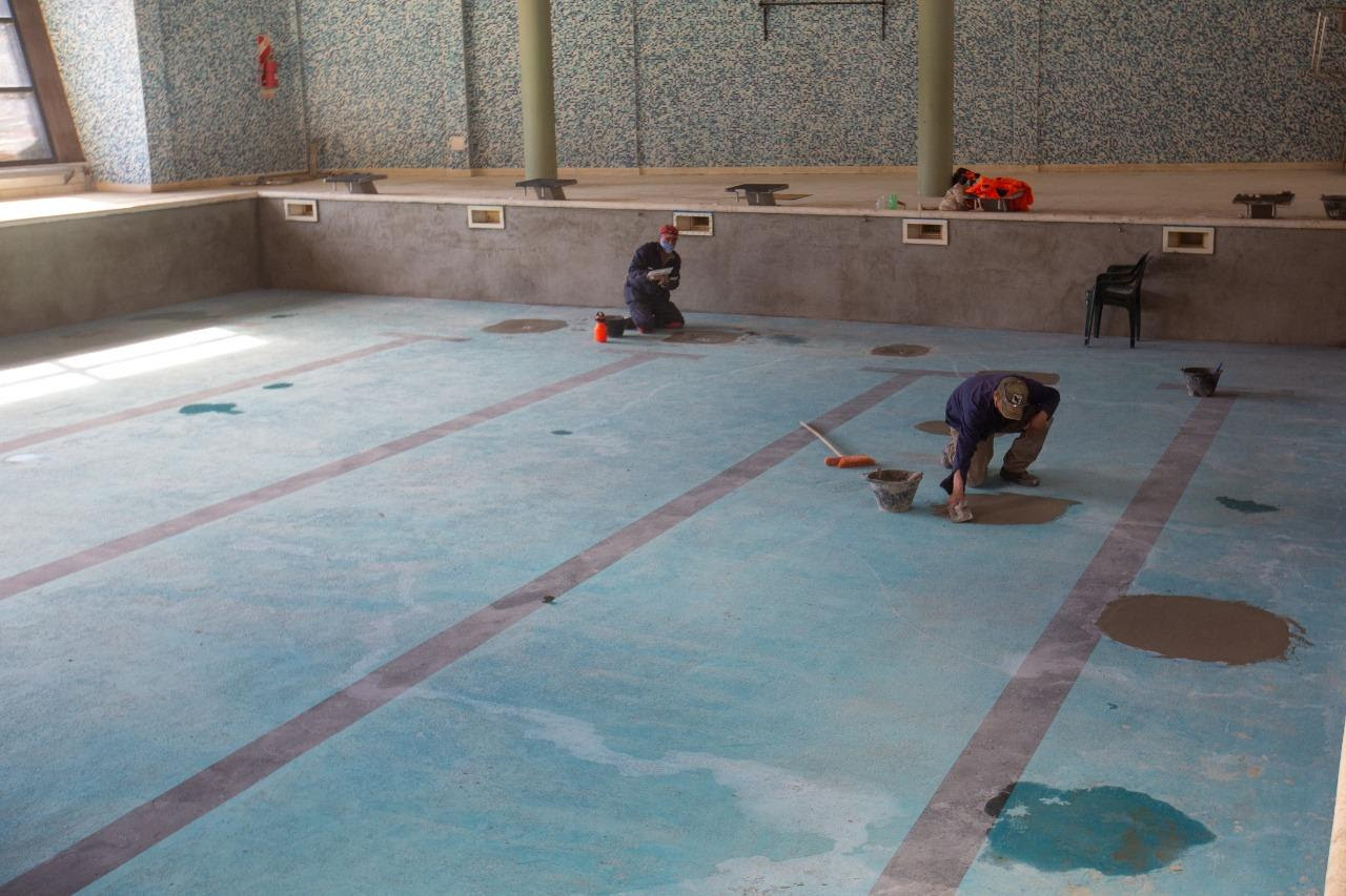 Los trabajos en ese sector del Polo Deportivo alcanzaron también la trinchera de servicio que comunica ambas piletas y la conexión de la sala de máquinas donde se realizó el mismo trabajo de desbaste e impermeabilización.