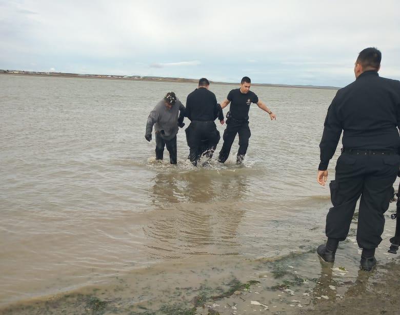 Dos policías se transformaron en héroes este domingo al salvarle la vida a un joven que había caído a las heladas aguas del río Grande.