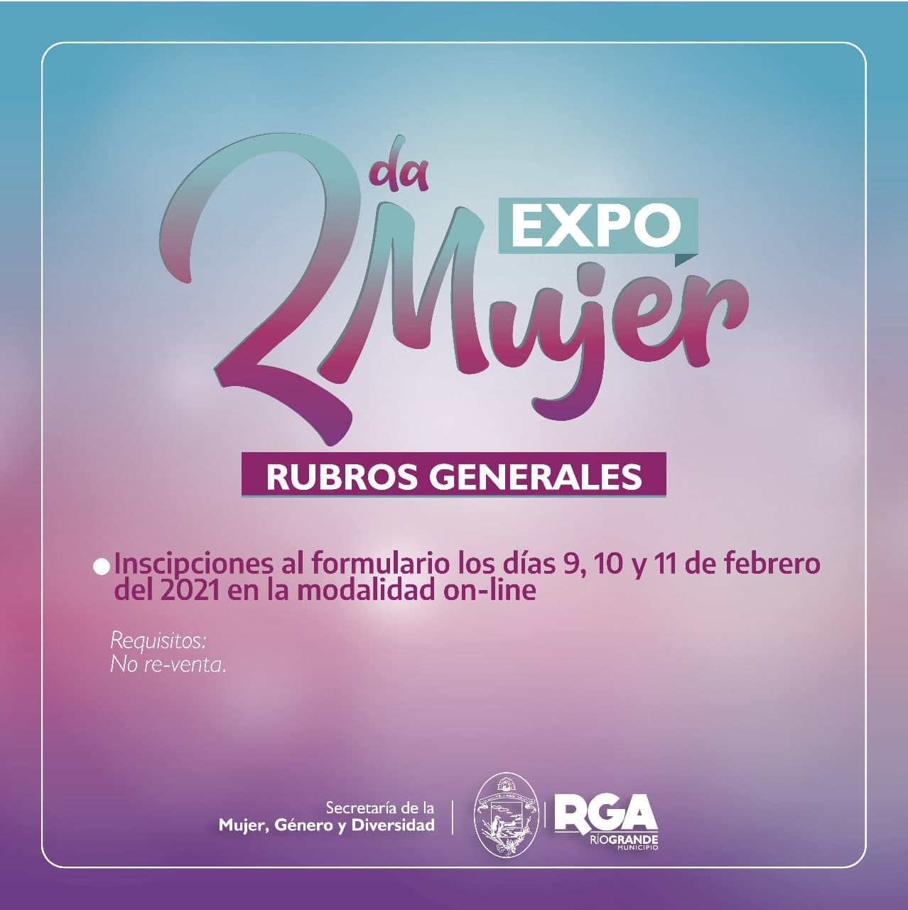 El Municipio de Río Grande informó que este martes 9, miércoles 10 y jueves 11 de febrero abren las preinscripciones online para rubros generales, con el fin de participar de la 2° Expo Mujer. Dicho evento se realizará en el mes de marzo en el marco del Día Internacional de la Mujer Trabajadora.
