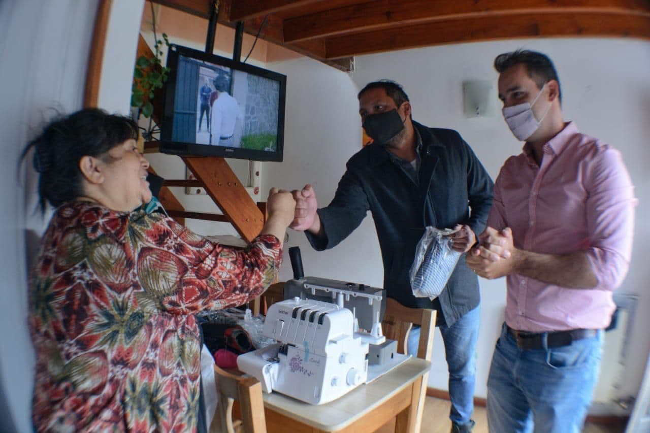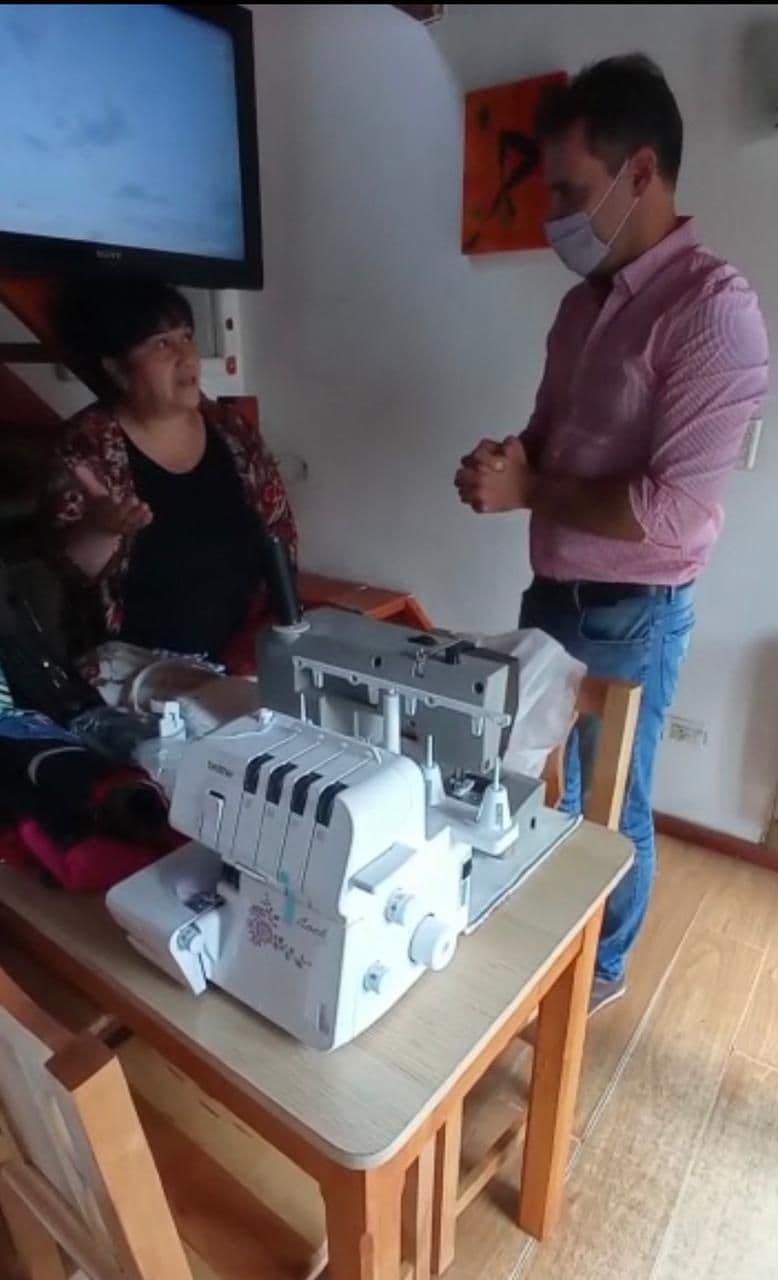 Ventura explicó que “estamos acercamos herramientas de trabajo a los emprendedores y emprendedoras de nuestra ciudad para encender todos los motores de la economía. Por eso, estuvimos con Delfina Cardenas, una vecina modista a quien acercamos una máquina overlock que le va a permitir poder realizar y confeccionar más y nuevos trabajos de costura y arreglos”.
