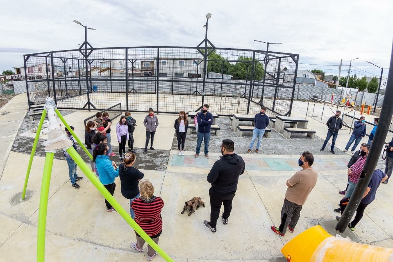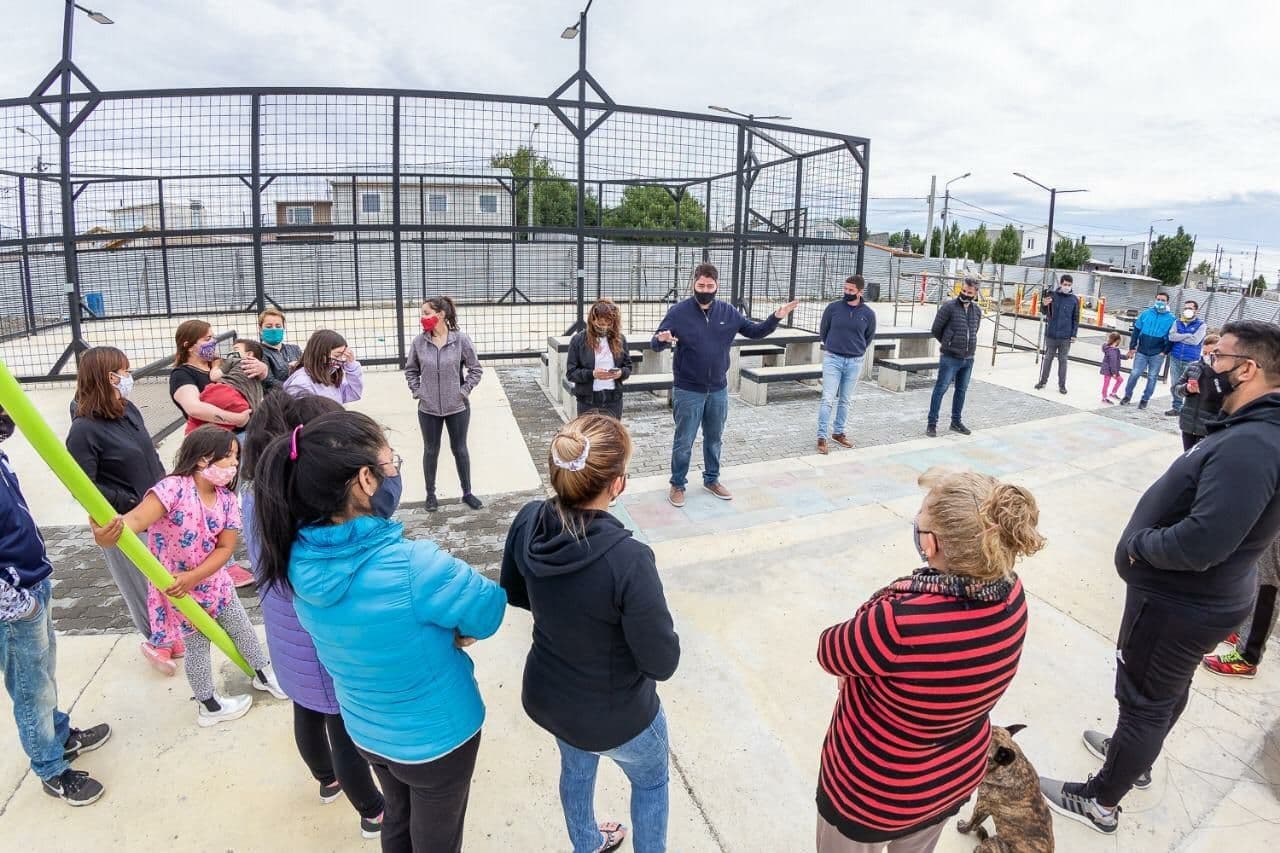 El intendente de Río Grande, Martín Perez, junto a la secretaria de Planificación, Inversión y Servicios Públicos, Silvina Mónaco, y vecinos del barrio, recorrieron la obra del nuevo playón deportivo del barrio María Auxiliadora, precisamente en el Pasaje Lujan.