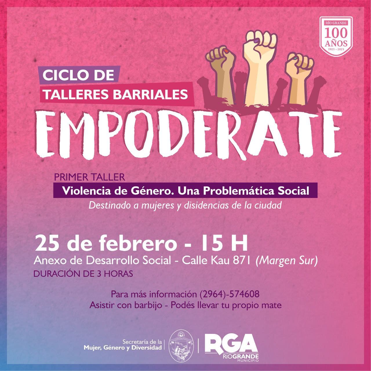 El Municipio de Río Grande, a través de la Secretaría de la Mujer, Género y Diversidad, invita a mujeres y diversidades a participar del Ciclo “Empoderate”. El mismo consta de una serie de encuentros donde se abordarán temáticas de género.