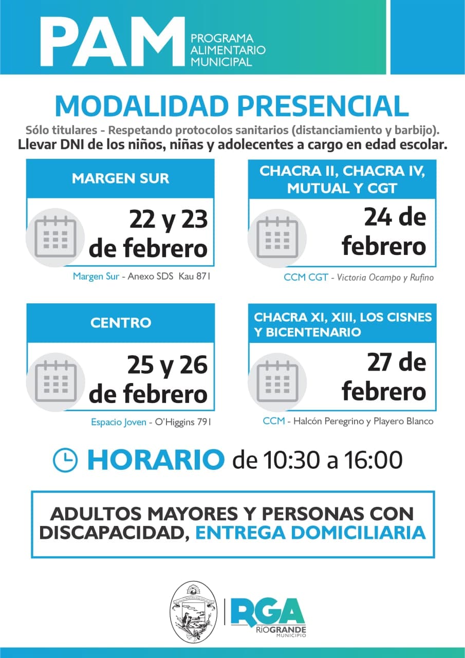 Los mismos son entregados de manera presencial, sólo a titulares empadronados en el ‘Programa Alimentario Municipal’, quienes deberán presentarse con D.N.I. del titular y de los niños, niñas y adolescentes a cargo que se encuentren en edad escolar.
