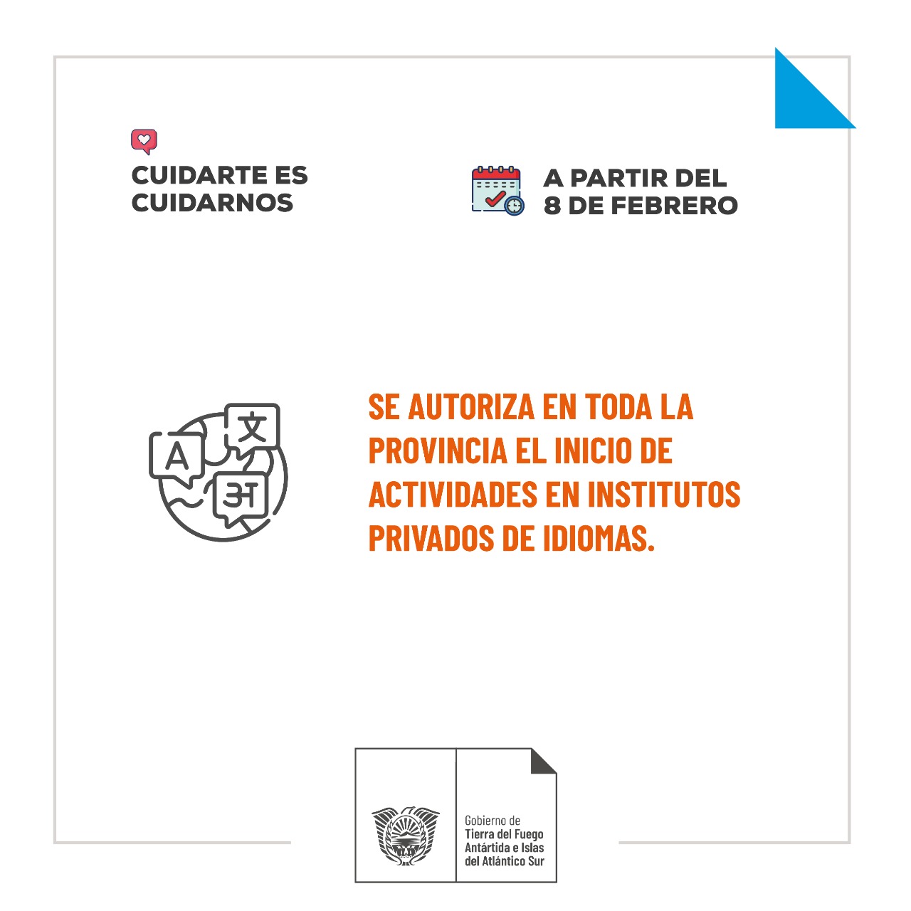 El Ministerio de Salud informó que, a partir del lunes 8 de febrero, en toda la Provincia se autoriza la actividad de Institutos Privados de Idiomas, dando estricto cumplimiento a los protocolos generales y particulares en materia de COVID-19.